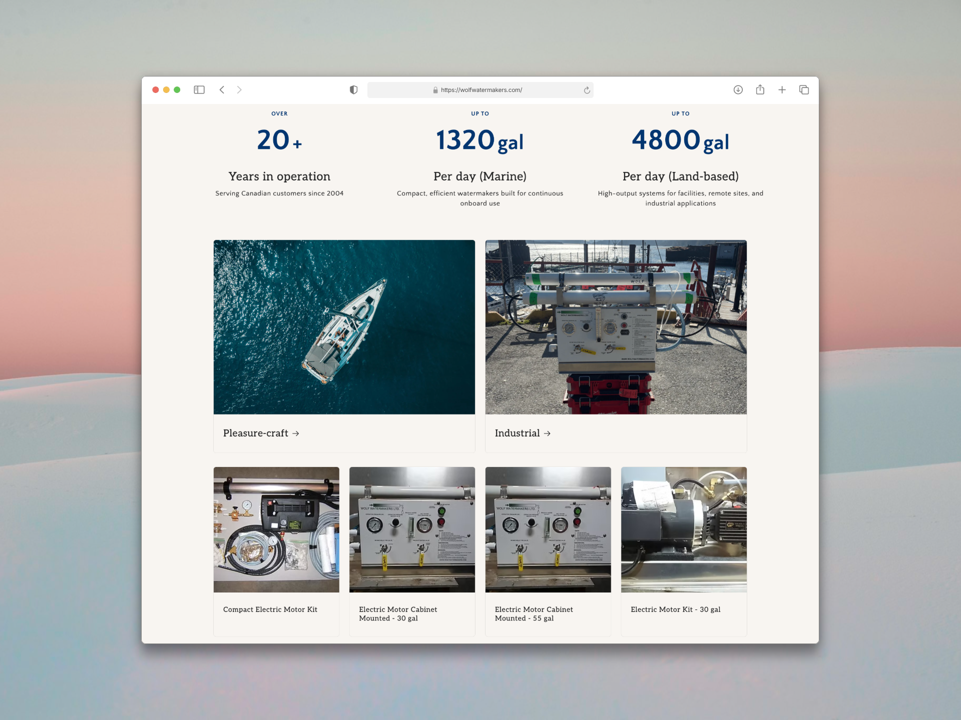 The final site strikes the perfect balance between modern design and clear communication, ensuring Wolf Watermakers stands out online and helps visitors quickly find the right watermaker for marine, industrial, or land-based applications. Thanks to strong branding and a clear message, development was a seamless process, and the result is a standout site that showcases reliable water independence without compromise.