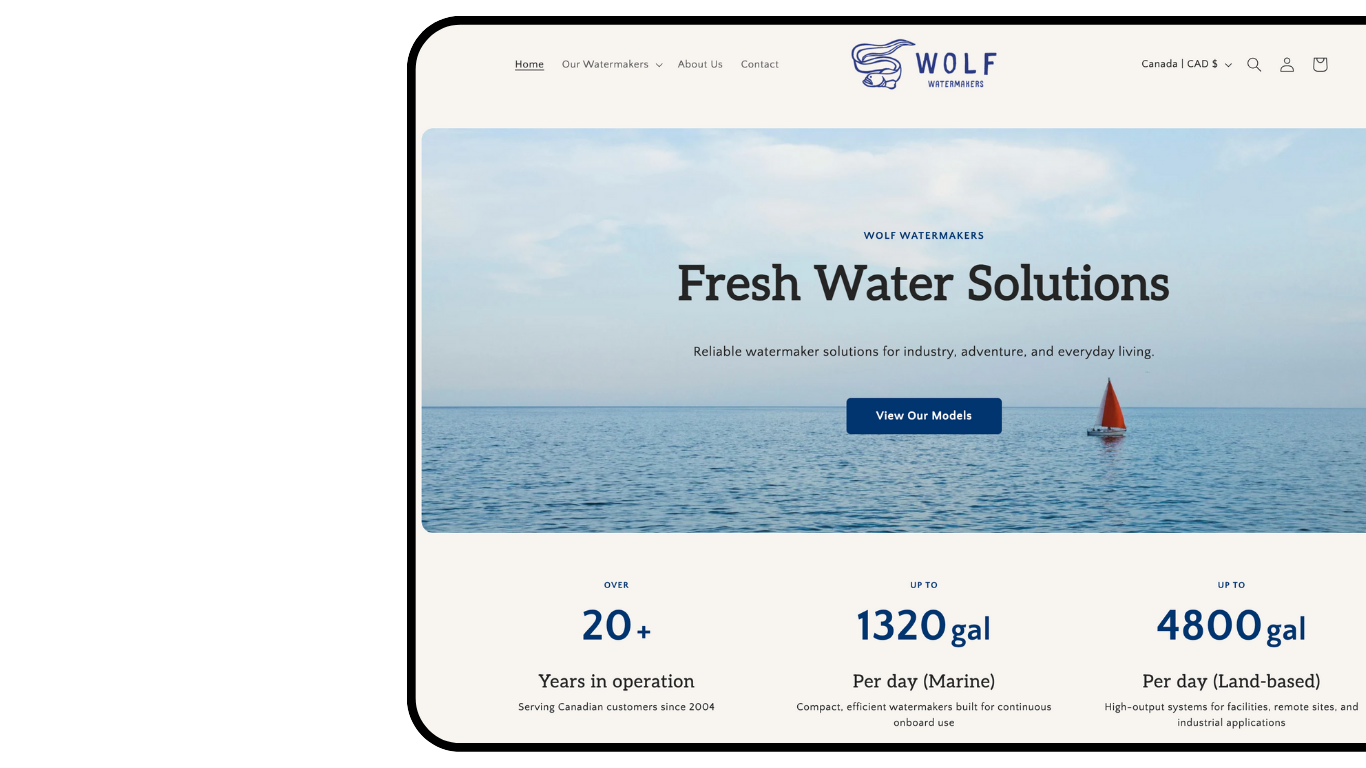 Wolf Watermakers delivers rugged, dependable freshwater solutions built for industry, adventure, and everyday use. With a reputation for durable, easy-to-use reverse osmosis systems proudly crafted in Canada, the company needed a website that reflected its commitment to quality, innovation, and customer confidence.